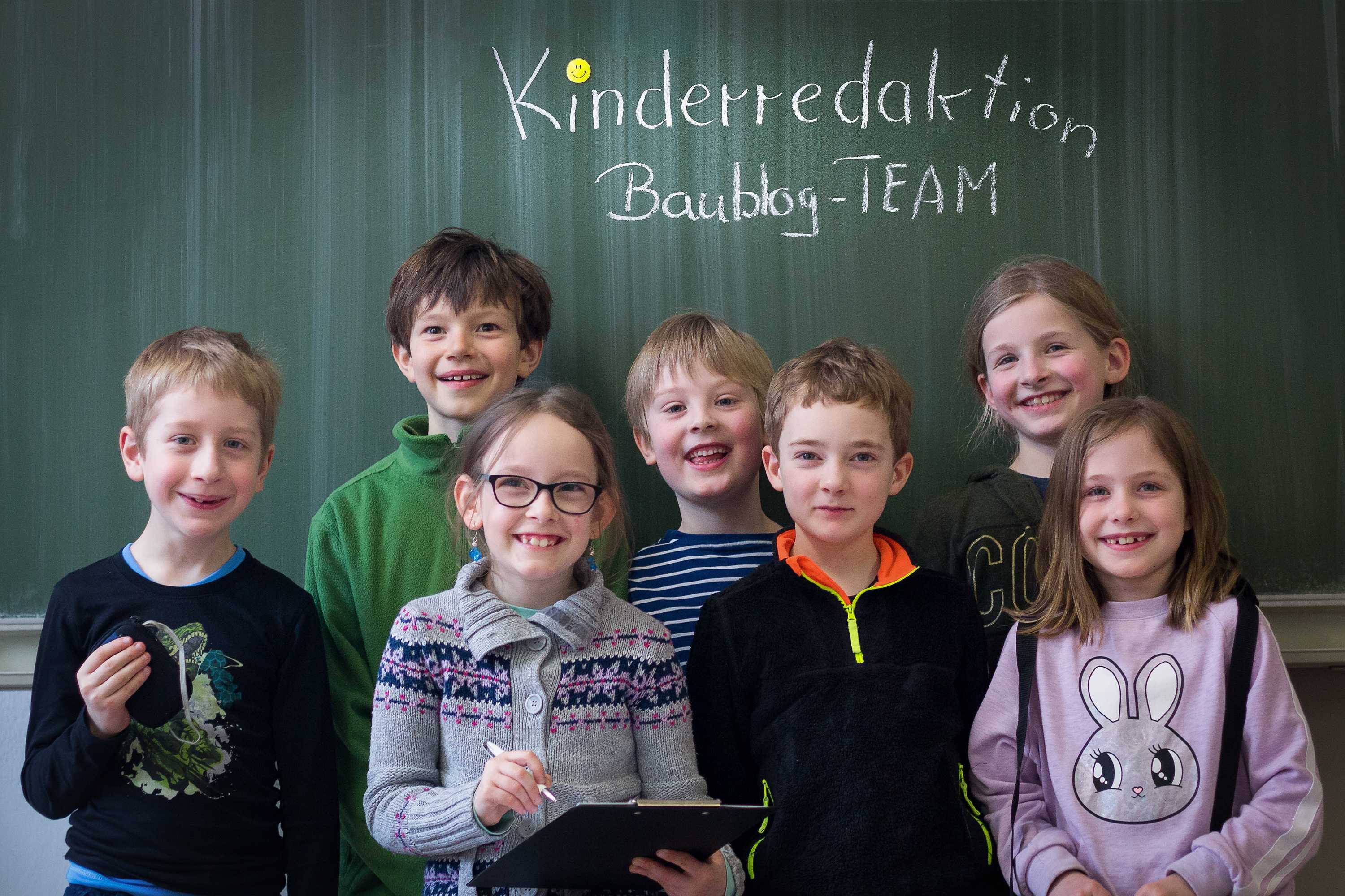 Unsere Kinderredaktion bestehend aus Mats (10), Thorid (9), Thea (8), Leevi (9), Jesper (7), Paul (7), Mia (6), sind live dabei und berichten in regelmäßigen Abständen vom Wachsen ihrer neuen „Betreuten“ über diesen Baublog. Alle vierzehn Tage trifft sich die Redaktionsgruppe um ihre Aufzeichnungen, Texte und Fotos zusammenzustellen. Bleiben Sie dran und verfolgen Sie was die Kinder, Lehrkräfte, Mitarbeiter und Eltern während der anderthalbjährigen Bauphase erleben und wie nach und nach ein neues Gebäude für die Kinder entsteht.