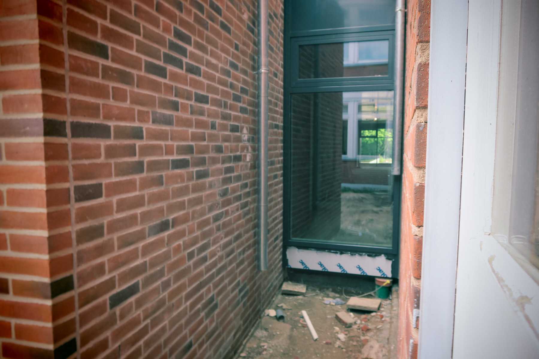 Die Bauarbeiter arbeiten jetzt meistens im Inneren des Neubaus, deshalb bekommen wir nicht mehr so viel von den Arbeiten mit. Wie ihr sehen könnt, ist nun auch endlich das Gerüst abgebaut worden. So sehen die Außenwände noch viel schöner und die Fenster viel größer aus.
