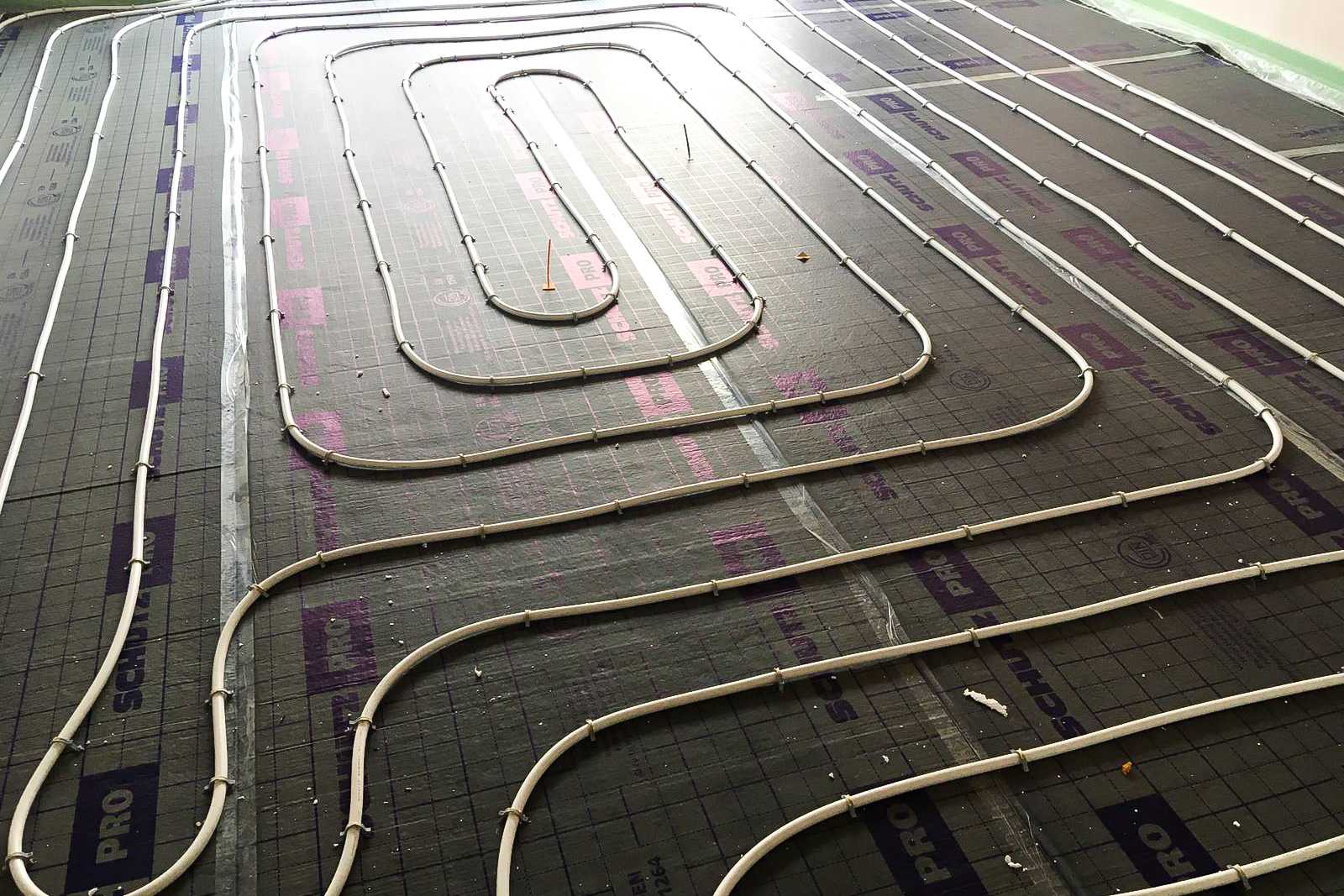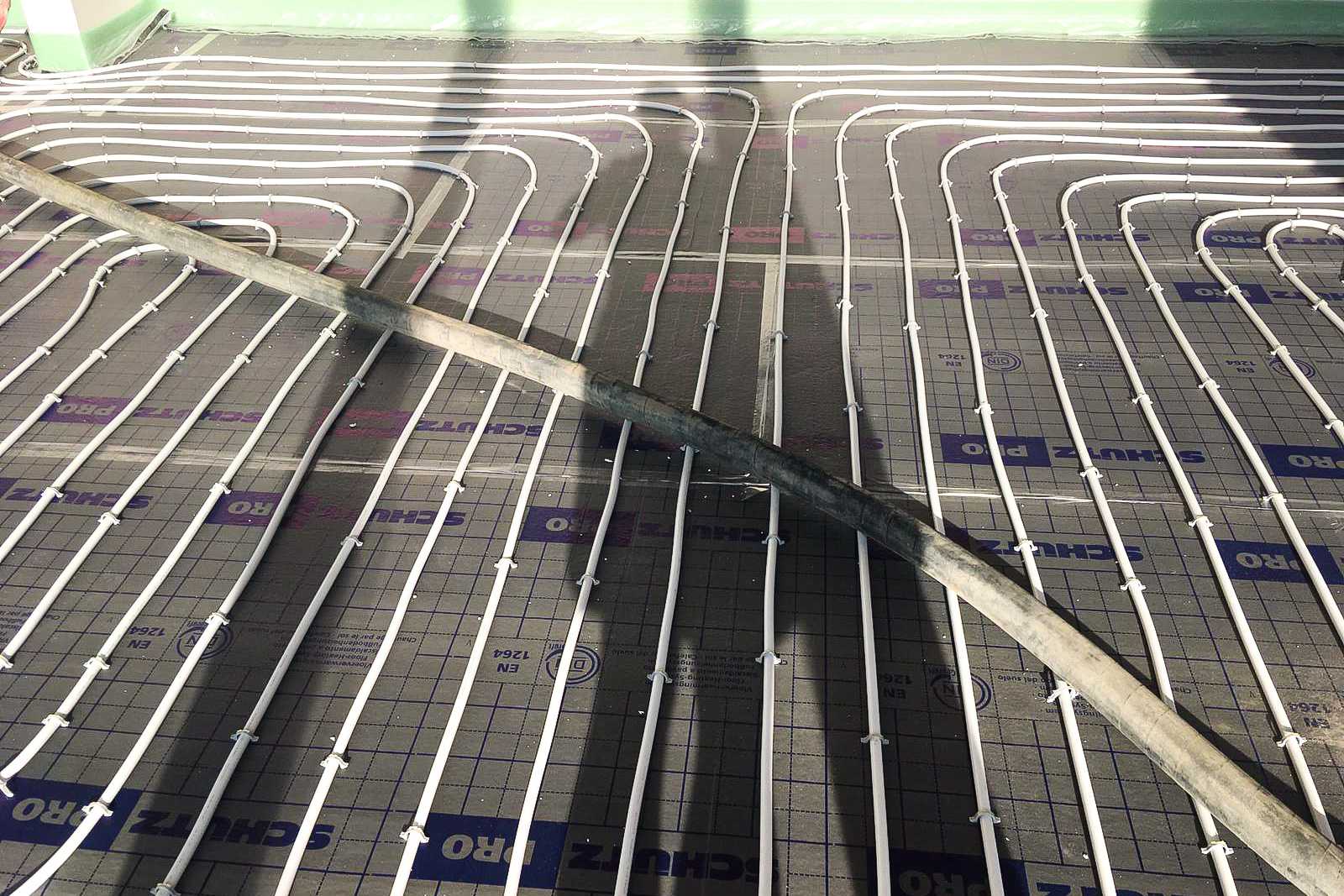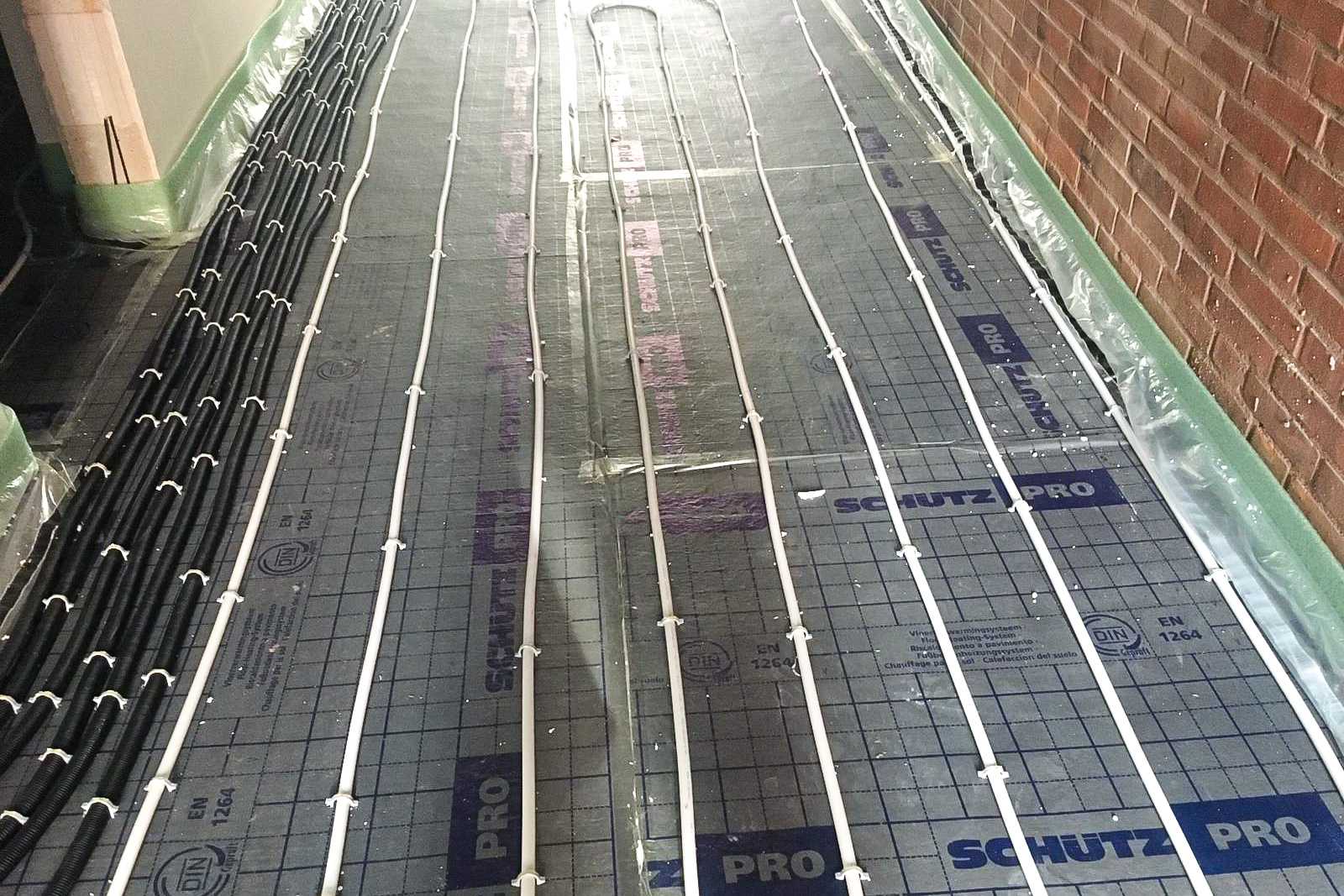 Bevor das gemacht wurde, haben die Arbeiter aber zuerst eine Fußbodenheizung verlegt. Die Rohre haben sie in Schneckenform angeordnet. Es sah ein bisschen aus wie ein Mandala, dass wir gerne angemalt hätten ;).