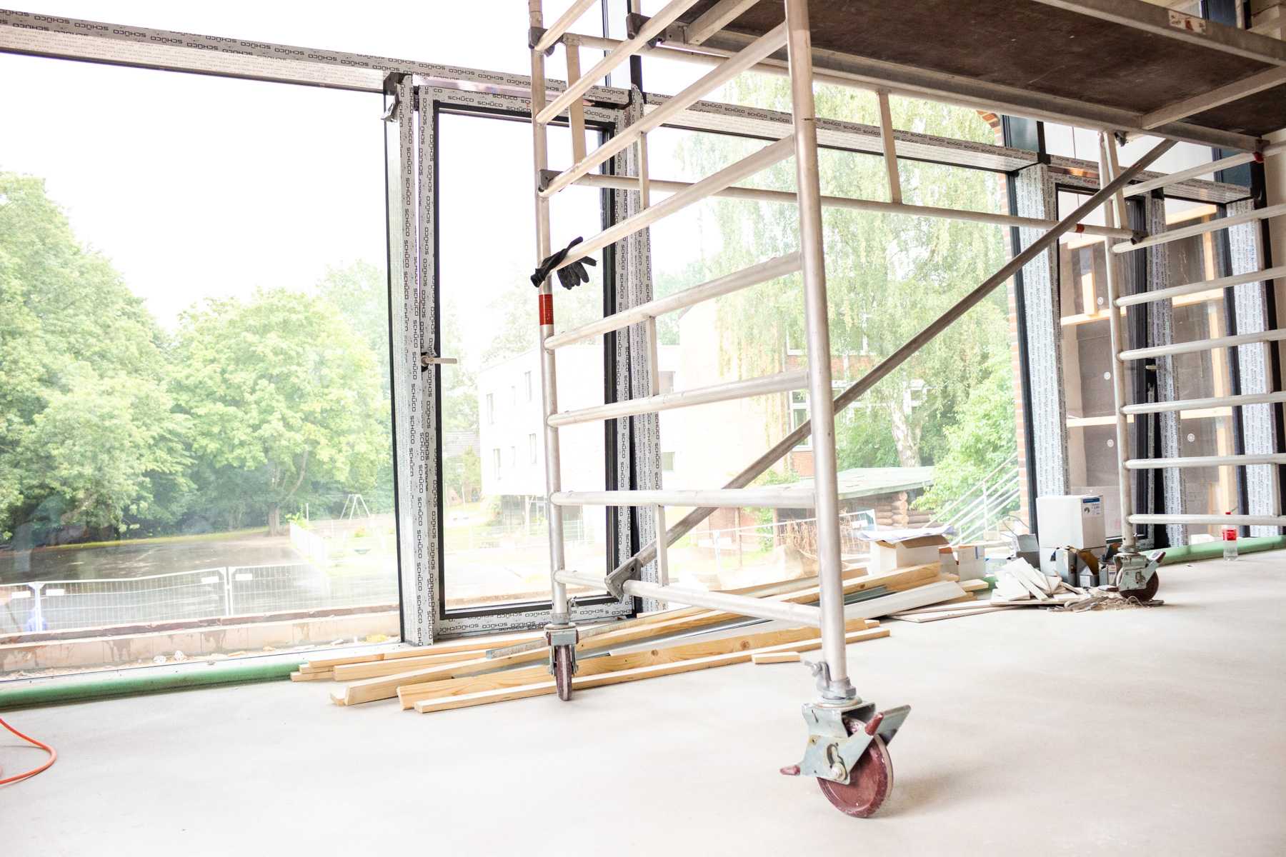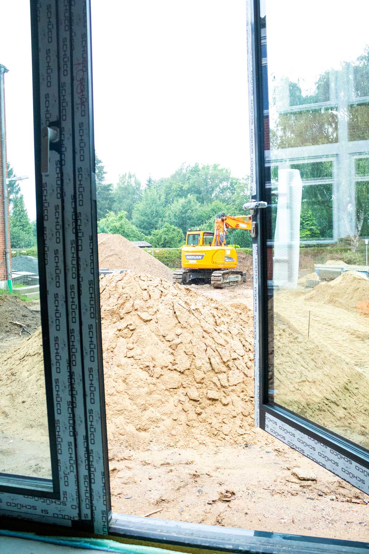 Vor den Sommerferien waren die Verbindungen zum Schulgebäude noch mit Platten zugemacht. Jetzt sind dort endlich richtige Türen. Wir können uns schon gut vorstellen, wie wir dort bald hin und her gehen werden.