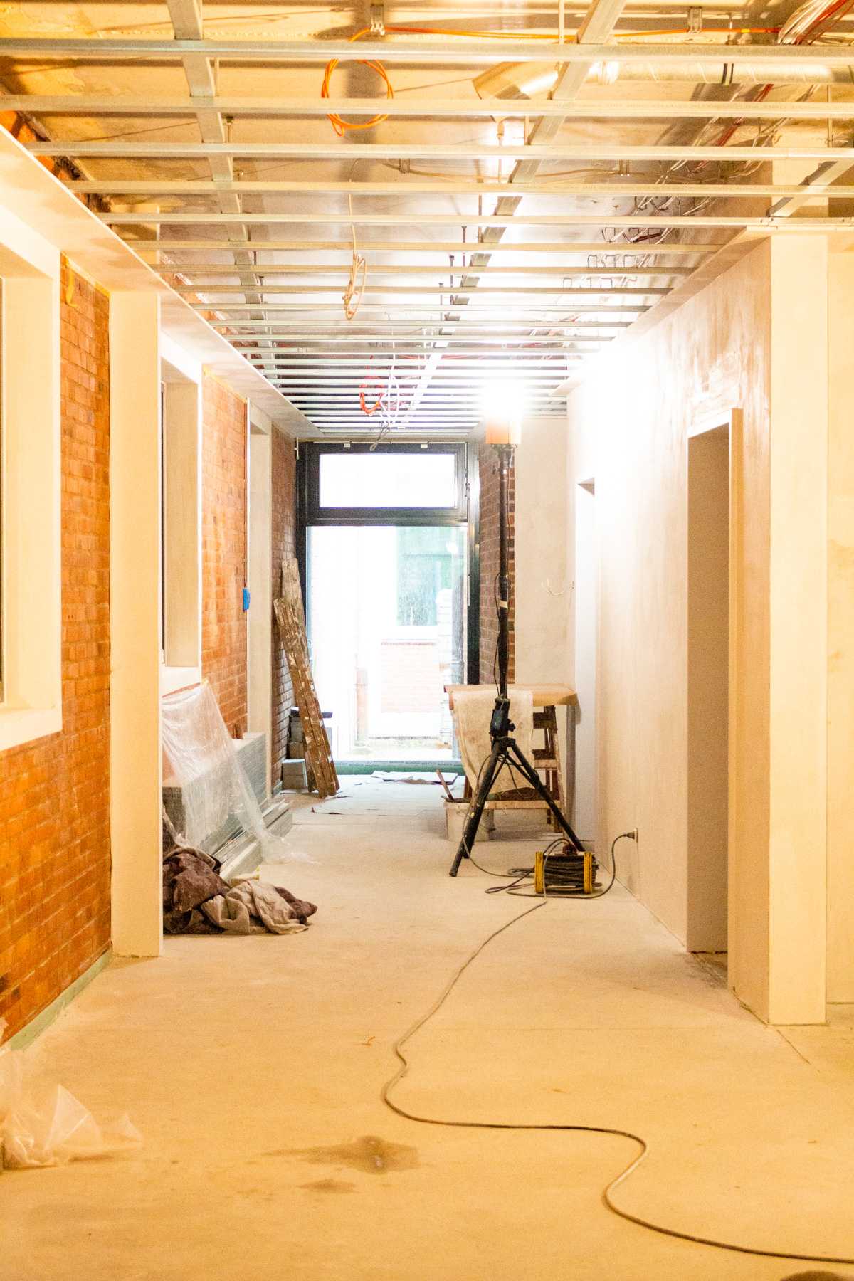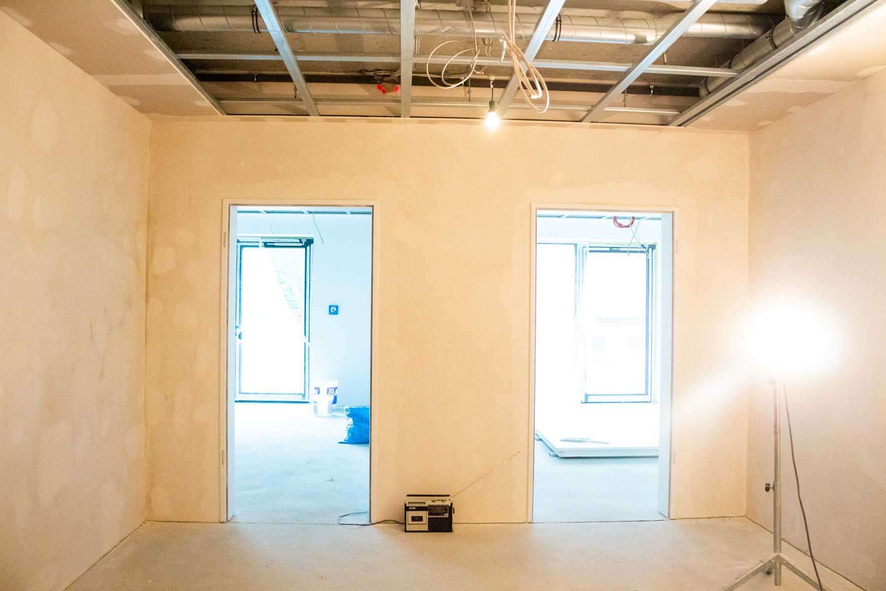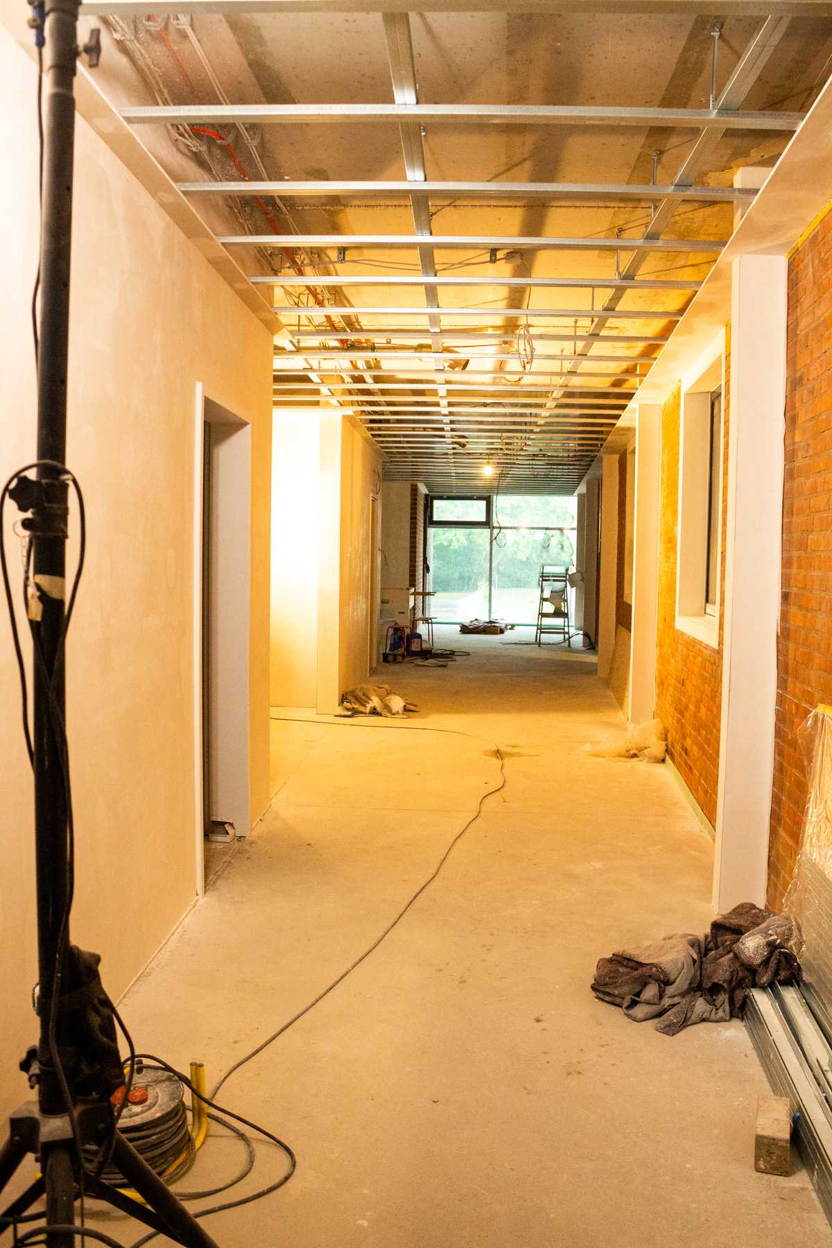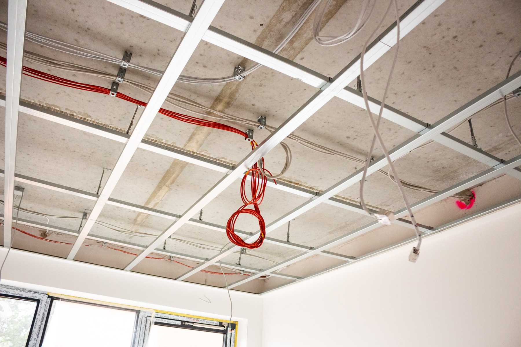 Überall an den Decken können wir Kabel entdecken. Die Elektriker waren also auch schon da.