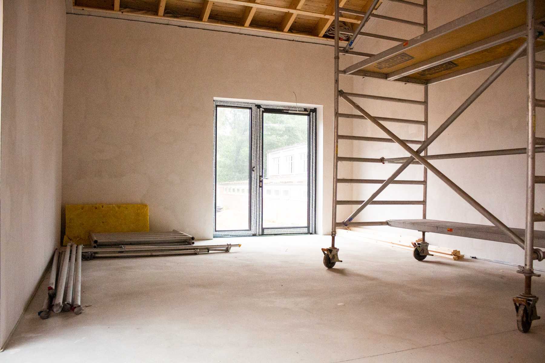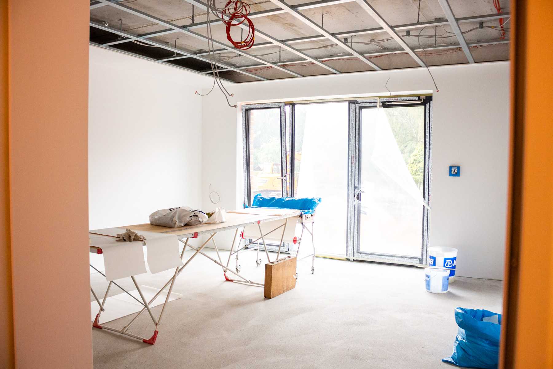 Der große Raum am Ende des Neubaus sieht mit den weißen Wänden noch viel größer aus.