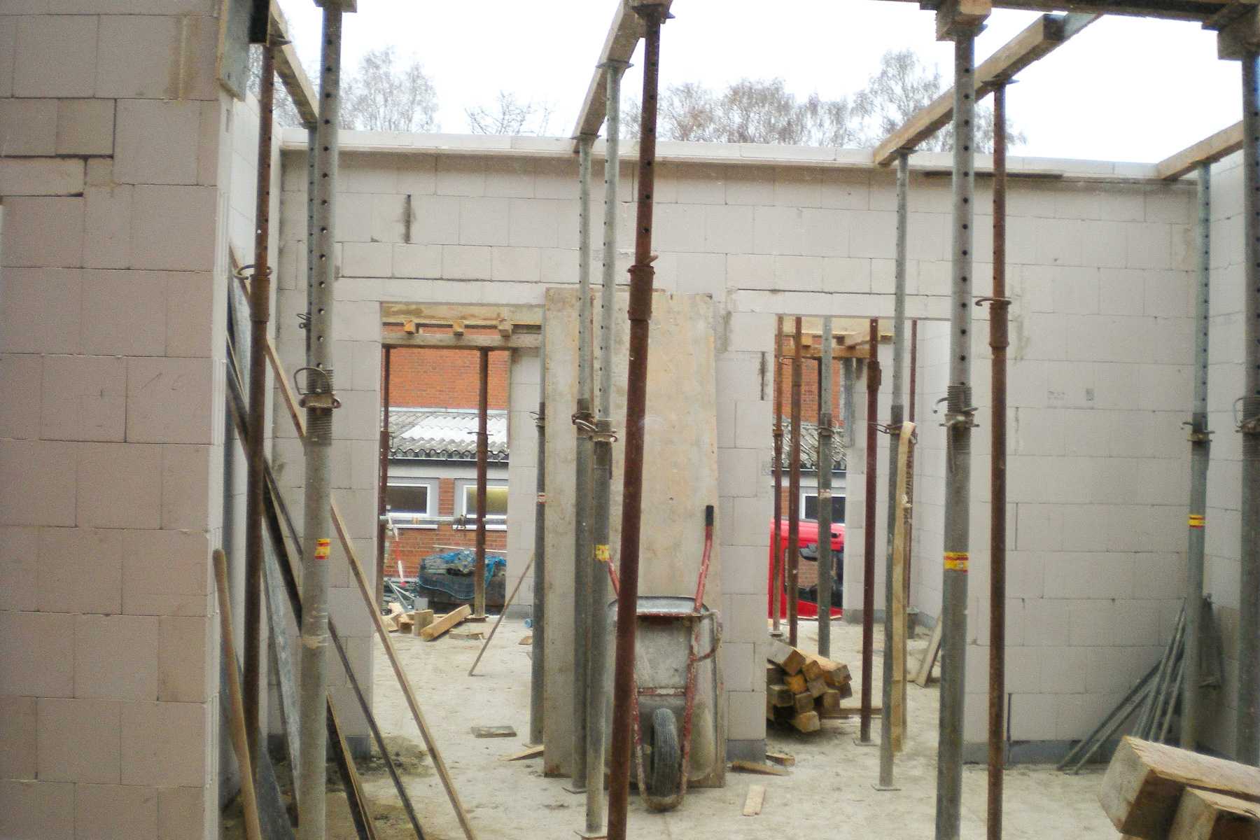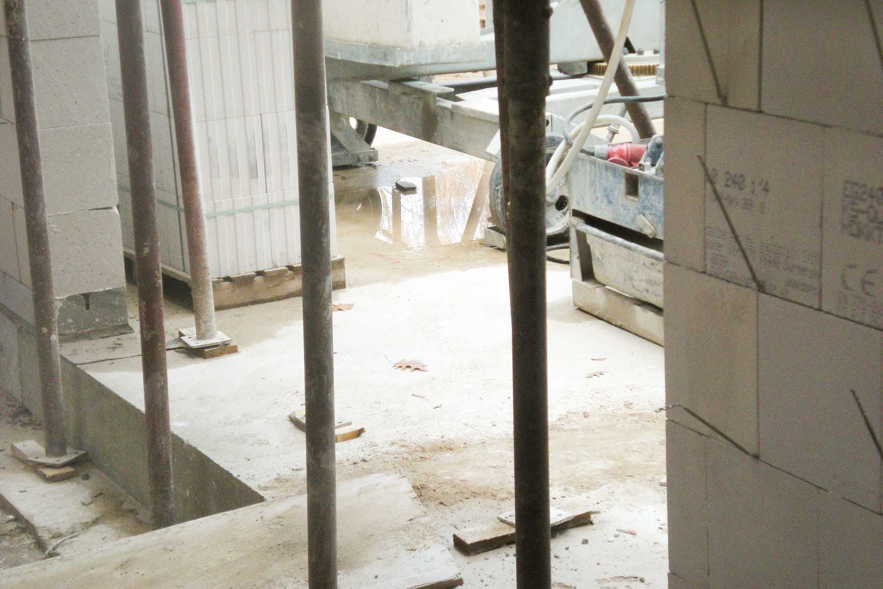 Von unserem Beobachtungsposten aus dem ersten Stock kann man jetzt sehr gut die Räume erkennen. Wir finden die sehen ein wenig kleiner aus, als wir sie uns vorgestellt haben. Wir haben uns aber erklären lassen, dass das von oben natürlich nur so wirkt, und dass die Räume alle ganz unterschiedliche Funktionen haben werden. So wird es zum Beispiel auch eine barrierefreies Badezimmer geben.