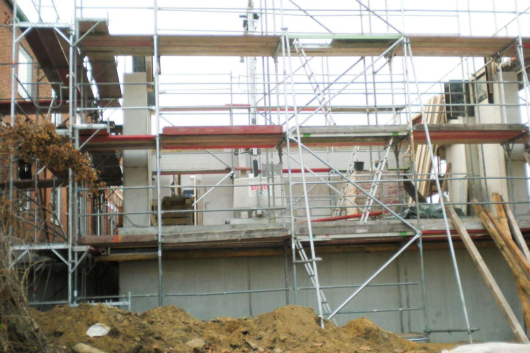 Außerdem ist ein großes Gerüst um das Gebäude aufgestellt worden.