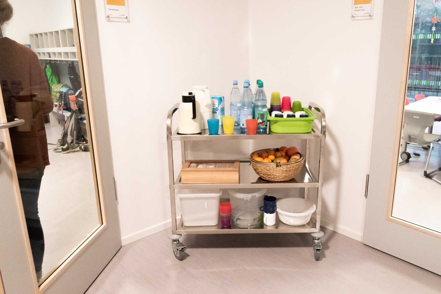 Der Anmeldebereich ist auch viel größer als vorher, so dass sich dort nicht mehr alle gegenseitig auf den Füßen stehen. In der Zeit in der die meisten Kinder am Nachmittag abgeholt werden, müssen die Eltern auf dem Schulflur warten. Das finden wir gut. Für alle Kinder, die noch länger im Ganztag bleiben, ist es nämlich viel entspannter, wenn nicht so viele Eltern gleichzeitig im Anmeldebereich herum stehen.
